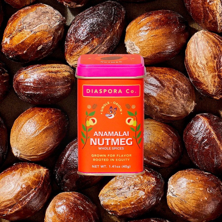 Grown by Harish Manoj Kumar & Karthikeyan Palaniswamy on their family estate at the base of the Western Ghats alongside their award-winning Anamalai Cacao. Your nutmeg is fully tree ripened for maximum flavor and oil content, which keeps it aromatic in your kitchen for longer! Manoj is a regenerative farmer and has converted the entire estate to be 100% chemical free since 2012, a change that has caused the nutmeg trees with their shallow root systems to really flourish and transform as the soil has gotten more and more nourishment.