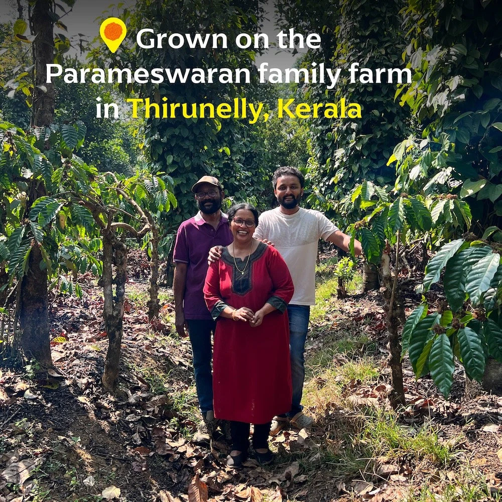 Grown on the Parameswaran family farm, where Parameswaran and his son Akash have been naturally farming pepper for over 35 years, amidst passion fruit, tigers (no, really!), and the largest collection of bamboo and palm varieties in the region! Their white pepper is vine ripened, hand harvested with utmost care to ensure maximum flavor, and unreasonably tasty.