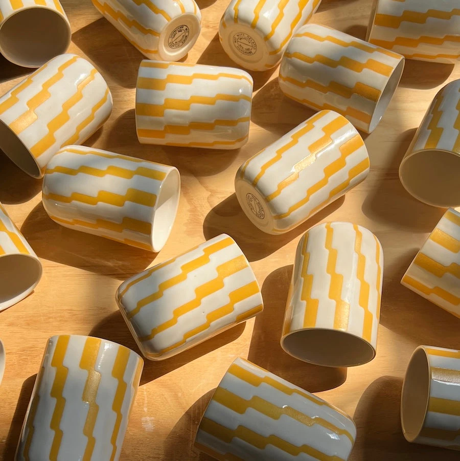 Sarah started off her career at an architectural firm where, in her own words, “everyone wore dress pants and a suit jacket everyday, and everything was black and white”. NWR, her side project at the time, was the antithesis to everything that the corporate world stood for. “It was just for fun and I would draw from my learnings of architecture and design but wasn’t limited by any of it. I had this idea of an office that was completely neutral and stoic and this super vibrant cup on my desk that could be my little portal to escape.”